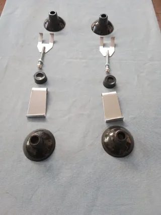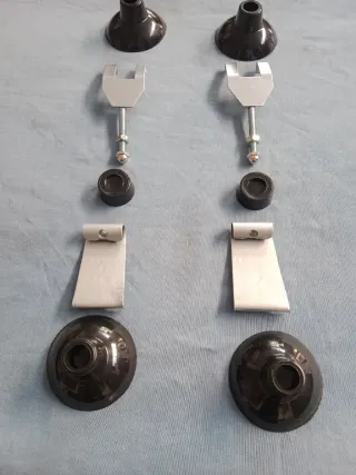 Conjunto de anclajes y ventosas para baca de Seat 600. - Piezas metálicas y de goma. - Incluye dos ventosas grandes y dos soportes con tornillería.