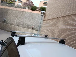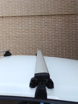 Barras de techo plateadas para coche. - Diseño aerodinámico. - Material de aluminio. - Tienen una llave de seguridad. - Usadas pero en perfecto estado para su funcionalidad. - Compatibles con seat leon, Peugeot entre otros de 5 puertas. - Llave de seguridad.