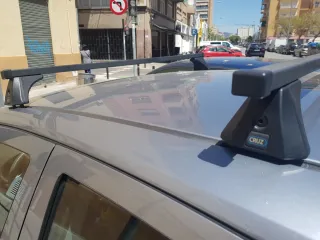 Se venden dos barras portaequipajes para coche Seat 124. Están en buen estado, aunque presentan algunas señales de uso. - Fabricadas en aluminio. - Incluyen soportes de montaje. - Ideales para transportar equipaje o material deportivo.