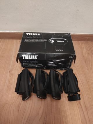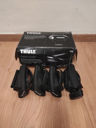 Barras Baca soportes 4 soportes Thule Rapid System 775 para barras de techo. Para Toyota RAV4 Vw Transporter Tiguan T roc T Cross Taygo Touran Nissan Qashqai Xtrail Terrano Mazda Jeep Fiat Peugeot Rifter berlingo Parner Citroen C4 Fabricados por Thule para coches con barras Elevadas gordas Perfecto estado de uso Con llaves - Diseñados para vehículos con rieles preinstalados. - Incluyen el logo de Toyota en las tapas. Para Toyota RAV4 Volvo Xc70 xc90 Nissan Qashqai Peugeot Rifer Fiat VW T roc T Cross Tiguan Audi Skoda Octavia Yeti Jeep Ford Renault Laguna Megane