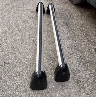Se venden dos barras portaequipajes para coche. Son de aluminio, color plata, y están en buen estado. Originales Toyota 2018 - Fabricadas en aluminio. - Color plata. - Incluyen dos soportes de fijación.