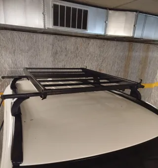 Baca portaequipajes para furgoneta, en buen estado. - Estructura metálica resistente. - Ideal para transportar objetos en el techo de tu vehículo. - Se encuentra en buen estado, con señales normales de uso. -Ideal para Peugeot Partner, Citroën Berlingo. - Tres puntos de anclaje en cada lado, sujetado con tornillo y su protector de plástico para cada anclaje.