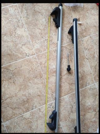 Se venden dos barras de baca para Volkswagen Golf VI. Están en buen estado, aunque presentan algunas señales de uso. - Fabricadas en aluminio. - Color plata. - Llave para apretarlas incluida. No se si sirve para otros coches. Se lo puede llevar y si no, me lo devuelve.