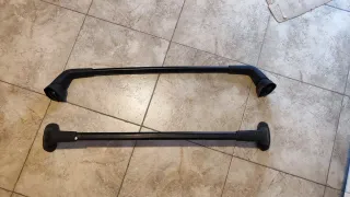 Se venden dos barras de techo para VW Golf V (5). Están en buen estado, aunque presentan algunas señales de uso. - Válidas para VW Golf V (5). - Fabricadas en aluminio. - Color plata con detalles negros.
