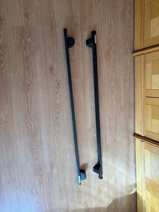 Barras de techo para BMW Serie 3 del año 2016. - Fabricadas en metal negro. - Incluyen soportes y fijaciones al techo. - Solo vendo las dos barras del techo. - Son de Decathlon y tienen embellecedores laterales. Incluye toda la tornilleria. -NO INCLUYO LAS FIJACIONES DE BICICLETA porque me sirven