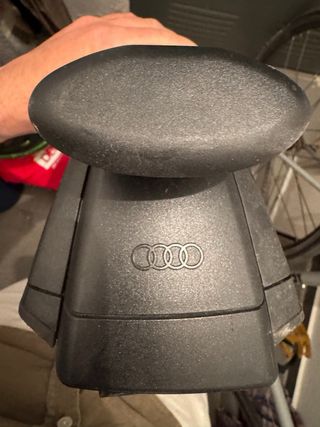 Baca portaequipajes de la marca Audi. Diseñada para ser compatible con diversos modelos de vehículos. - Material resistente. - Logo de Audi visible.