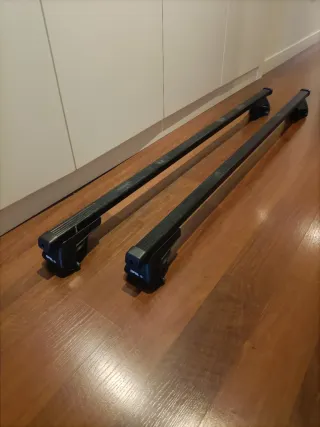 Baca portaequipajes extensible para coche. Tal cual se vende - Barras de aluminio. - Soportes de goma negra. - Extensible para adaptarse a diferentes anchos.
