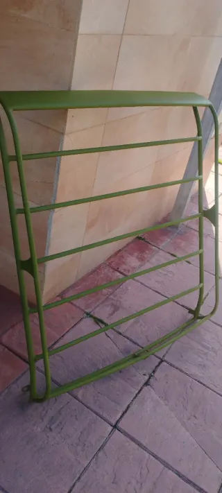 Baca de coche metálica, tubo de hierro. Antigua, por diseño y los anclajes fijos que tiene parece de Peugeot 404 clásico de los años 60. Muy usual en esos modelos. 107 CMS. X 95 CMS. Apta también para modificaciones Off - Road, Fuera Carretera a iguales hoy dia. Distancia entre orificios, 93 X 101 CMS. Medidas que exceden de las dimensiones admitidas por la aplicación, y hay que tratar la forma de envío..