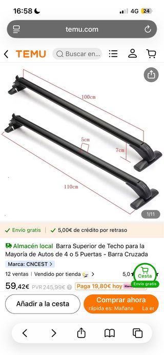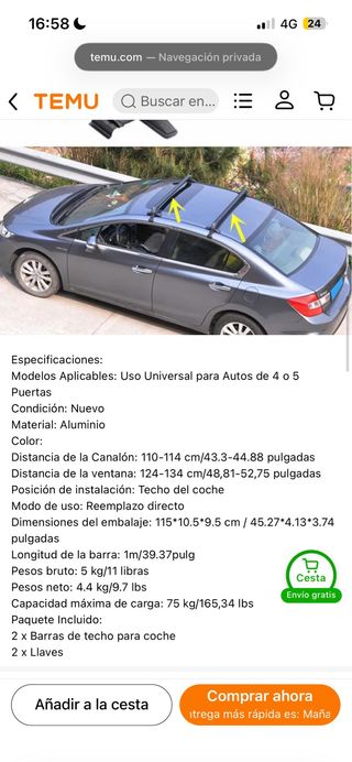 Móvil: 664 856 320 - Referencia: RLC146145. BARRAS DE TECHO 120CM BACAS Peso de carga: 90kg Material: aluminio Colocación: colocación solamente en vehículos con barras longitudinales de serie Seguridad: llave antirrobo en la abrazadera Medidas: 120cm (ancho total de barras) 110cm (apertura máxima de garras) 20cm (apertura mínima de garras)