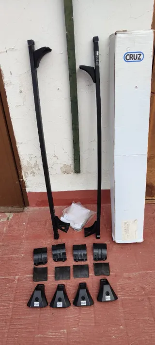 Juego de barras de techo de la marca Cruz. - Barras de techo negras. - Incluye soportes y accesorios de montaje. - Caja original incluida.