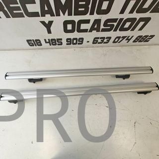 Se venden dos barras portaequipajes para VW T6. Están en buen estado, con algunas señales normales de uso. - Fabricadas para un ajuste perfecto en un VW T6. - Incluyen dos barras transversales. - Sistema de cierre con llave. hay que cabiarles las cerraduras