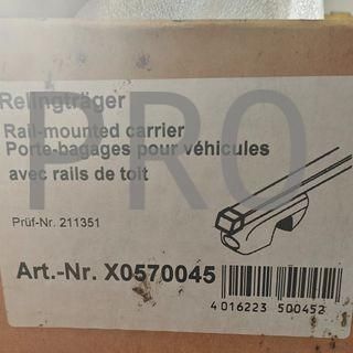 Juego de dos bacas de aluminio de la marca Norauto. Son ideales para transportar equipaje o accesorios en el techo de tu vehículo. Estaban montadas en un BMW X3 2021 - Material: Aluminio. - Color: Plateado. - Largo: 130 cms