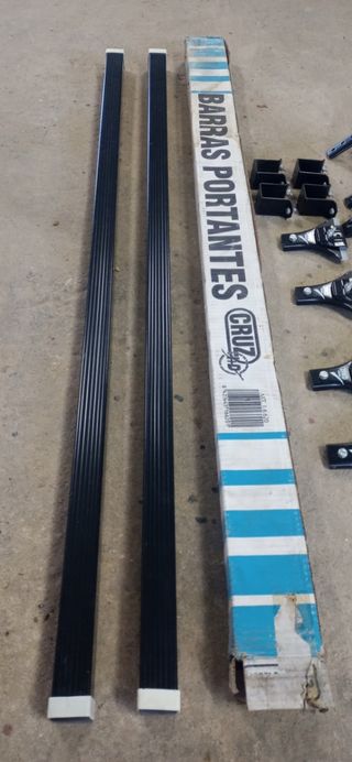 Baca 2 barras aluninio con soportes de furgoneta/camper 169 cm marca Cruz. como nueva, tiene 2 años. estaban en camper Fiat Ducato 2021. el precio no es negociable