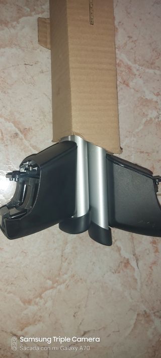 Baca original para Peugeot. Fabricada en aluminio y plástico negro. - Barras de techo. - Sistema de fijación incluido. -Muy fácil de quitar y poner. -En uno de los soportes, como se puede ver en la foto tiene una pequeña grieta que no afecta al funcionamiento. -Se venden por cambio de coche. -Perfecta para 5008, pero imagino que también para los otros modelos. -Le faltan las gomas negras de arriba, les entregaría después de Pascua, que las debo de tener en el pueblo. -En la tienda Peugeot online cuestan actualmente 329€.
