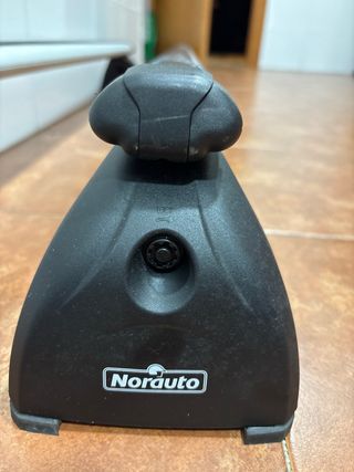 Juego de barras de techo de aluminio de la marca Norauto. -Patas con cierre antirrobo incluidos - Material: Aluminio - Marca: Norauto - Unico Dueño Yo lo tenia puesto en un Opel Moka,no se para que otro vehículo es compatible. - 111 centrimetros de longitud. Los enganches son con cierre antirrobo
