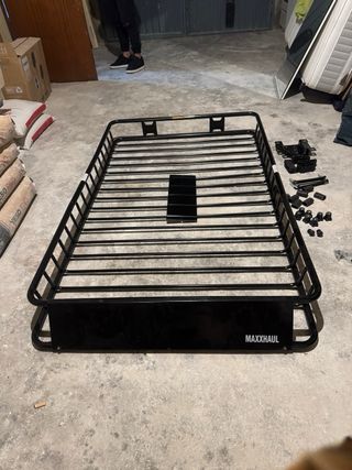 Baca portaequipajes de la marca MAXXHAUL, ideal para transportar equipaje adicional en tu vehículo. Fabricada en metal negro. - Diseño robusto y duradero. - Incluye accesorios de montaje.