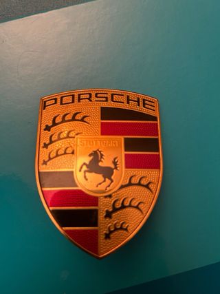 Emblema original de Porsche. - Diseño clásico del escudo. - Detalles en dorado y negro. - Inscripción 'Stuttgart' en el centro.