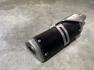 Silenciador NUEVO para moto KTM Duke 125. Pieza de repuesto con acabado en negro y detalles plateados. - Diseño deportivo. - Materiales resistentes. escape, tubo, Ktm, despiece, recambios, repuestos, puro, purillo,