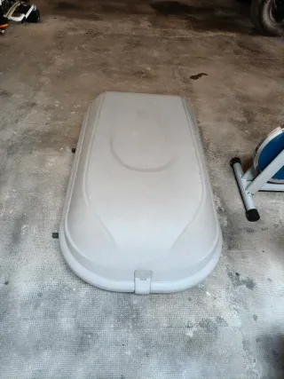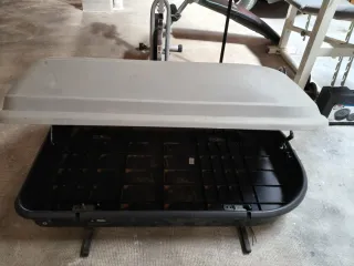 Cofre de techo de color gris, ideal para transportar equipaje adicional en tu vehículo. - Diseño aerodinámico. - Cierre de seguridad.( Me falta la llave, hay que ponerle una cerradura nueva) Precio negociable.