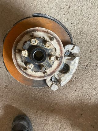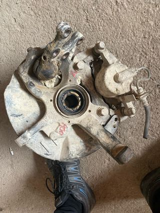 Mangueta delantera izquierda para Nissan Navara. Se encuentra en el estado que se muestra en las imágenes. - Pieza de desguace. - Incluye pinza de freno.