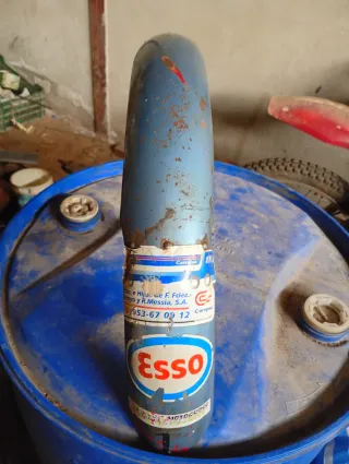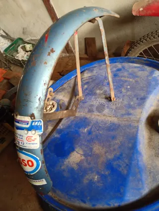 Guardabarros delantero para Derbi Antorcha Tricampeona SE. Presenta un diseño clásico y es ideal para motos de motocross. - Color azul con detalles de óxido. - Adhesivos de Esso y Campsa. - Inscripción MOTOCROSS en la parte inferior.
