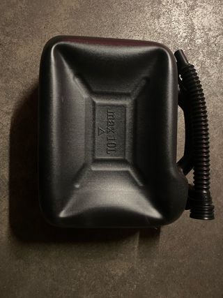 Bidón de combustible negro con capacidad de 10 litros. - Homologado para transporte de combustible. - Incluye boquilla flexible para vertido.