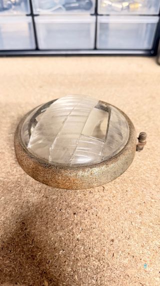 Optica para moto clásica. Cristal roto. Diametro cerquillo parte cristal 102mm Diametro cerquillo parte posterior 110mm