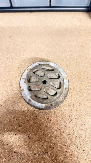 Claxon para motos clásicas Vespa o Lambretta, con voltaje de 6V. Pieza metálica con diseño circular y rejilla. - Material: Metal. - Voltaje: 6V. - Compatibilidad: Vespa, Lambretta.