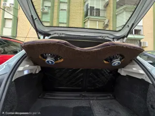 Bandeja de maletero hecha a mano para Peugeot 206. Incluye altavoces integrados Kenwood de 3 vías de 200w con cables oxigenados. - Diseño personalizado. - Material resistente.