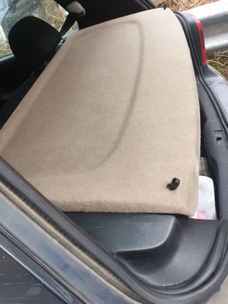 Vendo bandeja trasera para Toyota MR2 Spyder ZZW30 Es la pieza que cubre por encima de las cajoneras de detrás de los asentos, para que no se vea por fuera que tienes dentro de ellos. Esta en casi prfecto estado, únicamente algo sucio ya que lleva algo de tiempo guardado. Todas las fijaciones perfectas, asi como el trozo de lona, sin gretas ni rajaduras. Se hacen envios, aunque se valora entrega en mano Consultar cualquier duda