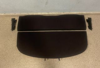 Bandeja para la tapa del maletero de un coche. Cubre el interior y puedes poner cosas encima como chaquetas - Material textil negro un poco rugoso para que no resbale lo que haya encima - Forma contorneada para adaptarse al maletero. - Incluye clips de sujeción.