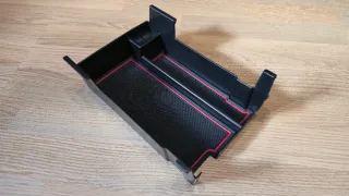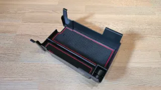 Organizador para el reposabrazos central del Mazda 3. Diseñado en color negro con detalles en rojo. Material: Plástico ABS. Color: Negro con borde rojo. Diseño con compartimentos. Organizador de consola central para Mazda 3 2019‑2025, en perfecto estado, sin marcas ni desgastes. Encaja en el reposabrazos central y añade una bandeja extra con alfombrilla de goma antideslizante para que monedas, móvil y llaves no se muevan. Se puede quitar la goma antideslizante como se ve en las imágenes. Compatible con el Mazda 3 desde 2019, la versión actual. Fácil de poner y quitar, ideal para ganar orden y aprovechar mejor el espacio interior