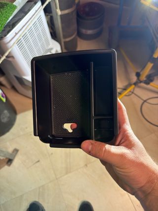 Bandeja organizadora para el interior de un VW Tiguan. Diseñada para encajar en la consola central. - Color negro. - Compartimentos para diversos objetos. - Base con textura antideslizante.