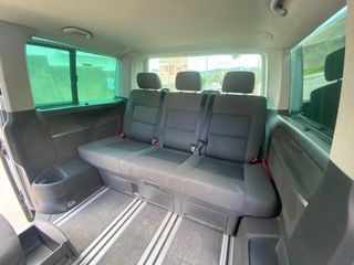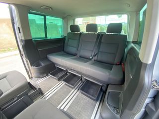 Asiento cama para Volkswagen T5 Multivan. Ideal para aprovechar el espacio. - Tapicería oscura. - Diseño funcional. - Bandejas para almacenar extraíbles