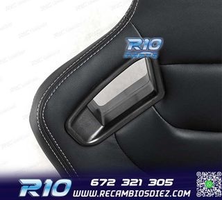 Móvel: 672 321 305 - Referencia: RLC024025. ASIENTO DEPORTIVO SEMI BAQUET ESTILO RS CUERO NEGRO SEMI PIEL Válido para: Universal Válido para todos los modelos Especificaciones: Modelo: Look RS Acabado: Semi piel Color: Negro Costura: Negra Esqueleto metálico Abatibles Respaldo regulable con acabado carbono Guias y soportes no incluidos Montaje. Adaptable a cualquier vehículo (puede ser necesario montar bases específicas) Acabados. Se seleccionan los mejores materiales para su fabricación Imagen. Dale un toque más fresco y deportivo al interior con este asiento RS