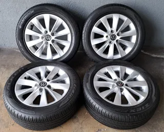 Juego de 4 llantas Originales Grupo VAG 6.5jx16H2 ET46 5X112. Las llantas vienen con neumáticos 205 55 16 91V. Son compatibles con varios coches: VW Golf 5-6-7-8. Caddy. Touran. Sharan. Jetta. Passat. Seat Leon. Altea. Alhambra. Exeo. Skoda Octavia. Superb. Audi A3 A4 A6. Se pueden ver y probar sin compromiso. El montaje lo hago al momento. Sin coste adicional. - Diseño multirradio plateado. - Medida de anclaje 5x112.