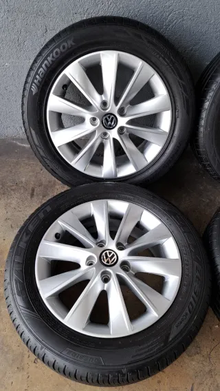 Juego de 4 llantas Originales Grupo VAG 6.5jx16H2 ET46 5X112. Las llantas vienen con neumáticos 205 55 16 91V Bridgestone Turanza Eco prácticamente nuevos. Son compatibles con varios coches: VW Golf 5-6-7-8. Caddy. Touran. Sharan. Jetta. Passat. Seat Leon. Altea. Alhambra. Exeo. Skoda Octavia. Superb. Audi A3 A4 A6. Aceptaría otras llantas a canbio si están bien a unos 100€ más la diferencia de 350€. Se pueden ver y probar sin compromiso. El montaje lo hago al momento sin coste adicional. - Diseño multirradio. - Acabado gris oscuro. - Medida de anclaje 5x112.