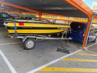 Se vende barca de 4 metros eslora,con bimini doble casco de fibra,papeles al día i seguro,con motor hidea con 2,5 horas de uso(nuevo) como se aprecia en las fotos,remolque comprado nuevo para la barca,se vende todo junto abstenerse ofertas por separado i ridículas,mejor ver todo i después valorar.