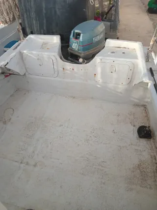MADESA 510 de poliéster reforzado y fibra de vidrio. Características: .- Eslora 4,75 m .- Manga 2 m .- Punta 0,6 m .- Motor Evinrude 30 CV fueraborda Documentación del barco en regla y a mí nombre. Con permiso hasta 2030 y seguro hasta Julio de 2026. Mantenimiento realizado a finales de 2025. Recién cambiado dirección completa (volante, cable...) Está listo para echarlo al mar. Regalo el remolque (tiene documentación en regla pero no es traspasable), la escalera para baño, el depósito de gasolina, algunos salvavidas, bengalas, defensas, batería con dos años y cargador de batería.