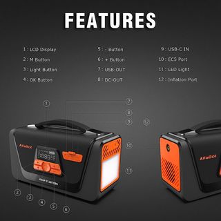 Hay tres especificaciones para la corriente máxima para elegir, seleccione el SKU que necesite según sus necesidades. Corriente máxima: 600A/1200A/2000A 1. Banco de energía portatil: USB con 4 puertos, se puede utilizar como un banco de energía para cargar el teléfono, iPad y otros dispositivos USB. Equipado con indicador muestra digitalmente 25-100%, que puede mostrar exactamente la cantidad eléctrica. Su teléfono puede cargarse 80% en 30 minutos. 2,8 PROTECCIONES DE SEGURIDAD: Ofrece protecciones contra carga inversa, cortocircuito, sobretemperatura, sobrecarga, sobrecorriente, sobredescarga, conexión inversa y polaridad inversa. 3. HERRAMIENTAS DE ARRANQUE DE SALTO DE ALTA CALIDAD: cada artículo de nuestra colección es el resultado de una importante investigación y desarrollo, así como de rigurosas pruebas de aplicación automotriz y ajustes realizados por nuestros especialistas altamente calificados. Probamos la resistencia y durabilidad del material para garantizar que las herramientas lleguen completamente preparadas para el uso previsto al final del consumidor. 4. POTENTE ARRANQUE DE COCHE: con una corriente máxima de 1200A, este arrancador de coche puede arrancar vehículos de 12V con motores de gasolina de 6,0 l/diésel de 2,0 Len segundos. Adecuado para automóviles, SUV, camiones, furgonetas, motocicletas o barcos, etc. LUCES DE EMERGENCIA LED 5,3 EN 1: Este arrancador de batería multifuncional tiene una linterna LED incorporada con 3 modos (luz fuerte/flash/SOS) para fines de iluminación o para indicar una emergencia. Arrancador de coche de 600A: corriente máxima de 600A, corriente de arranque de 300A. Es adecuado para coches de gasolina de menos de 3L. Arrancador de coche 1200A: corriente máxima 1200A, corriente de arranque 600A, es adecuado para coches a gasolina de menos de 4L y coches diésel 2Lunder