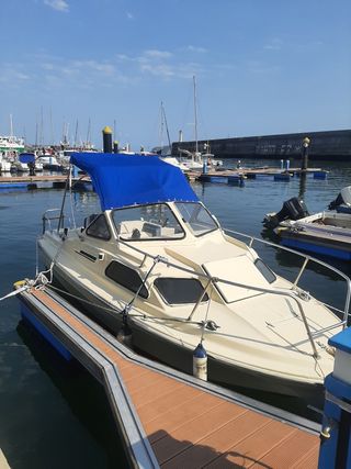 Barco de 5 m. de eslora.Batería nueva, conector y desconector de batería. (¡¡ATENCIÓN!!Motor yamaha 60 cv 2 tiempos gasolina arranca, funciona Pero necesita reparación o para PiezasPIERDE AGUA EN LA BASE DEL BLOQUE Y SE CALIENTA.!! Tiene sonda, toldo bimini, escalera y camarote amplio. Pantalan de alquiler en santurtzi . OPORTUNIDAD!! Se aceptan Cambios.