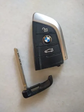 Llave de mando para BMW. Incluye la parte electrónica y la llave física. - Diseño moderno con detalles plateados. - Botones para apertura, cierre y maletero.