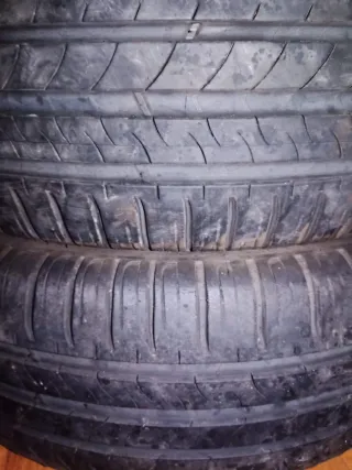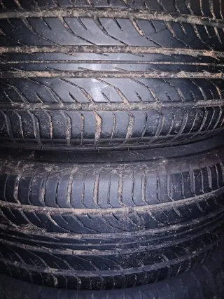Juego de cuatro neumáticos en buen estado. - Medida: 215/65 R15. - Índices de carga y velocidad: 96H y 96T. -2 Fronwey Ecogren 96H con llantas de Voyager al 96 por ciento. (2x80 euros). -2 Michelin 96T sin llantas al 80 por ciento. (2x80 eu). Las 4 por 150 euros. Están sucias del campo (carrillo). Soli venir a recogerlas a Basauri. No envío.