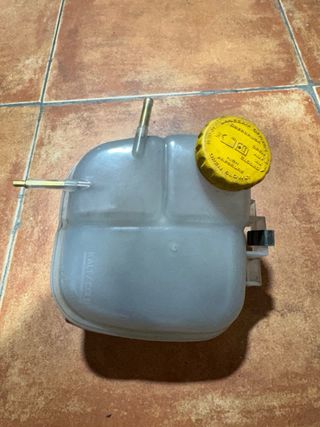 Vaso de expansión para Opel Astra G. Pieza de plástico translúcido con tapón amarillo. Comprado nuevo y cambiado, uso en coche 2 años aprox. No esta amarillo. - Conexiones de latón. - Indicadores de nivel 'MIN' y 'MAX' grabados.