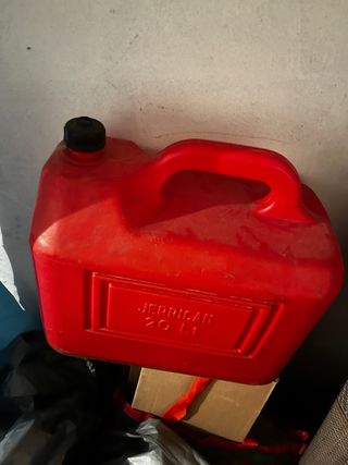 Bidón de plástico rojo para gasolina con capacidad de 20 litros. - Marca: Jerrican - Capacidad: 20 L - Color: Rojo