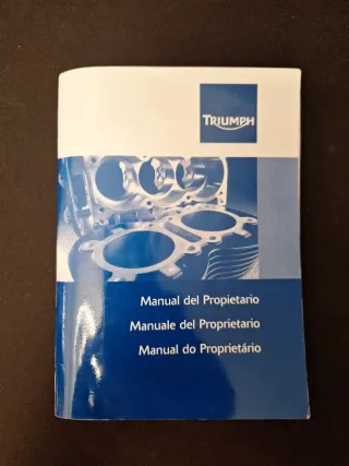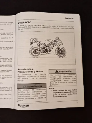 Manual del propietario para la motocicleta Triumph Daytona 675. - Cubre información en español, italiano y portugués. - Incluye el logo de Triumph.