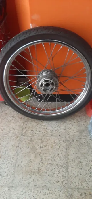 Rueda delantera de 21 pulgadas con neumático a estrenar. - Llanta de radios. - Neumático nuevo. - Procede de una Harley Davidson xl 1200 sportster que se cambio a llanta 19'