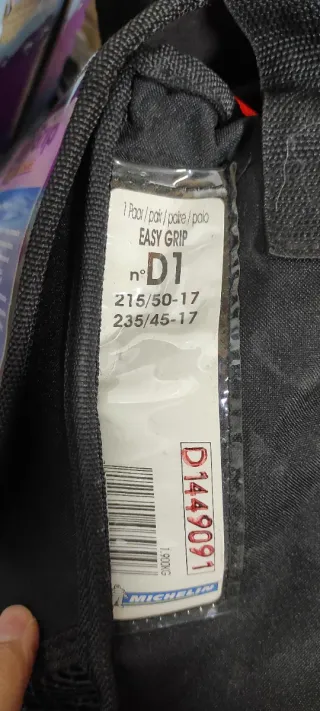 Fundas de nieve Michelin Easy Grip, modelo D1, para composite snow chains. Son fáciles de montar, ligeras y silenciosas. - Homologadas Equipamientos Especiales. - Incluye instrucciones en varios idiomas. - Certificación TÜV y GS.