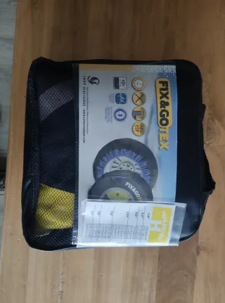 Cadenas textiles para nieve Snovit Fix&Go Tex. - Sin usar. - Talla H. - Incluye bolsa de transporte. - Certificación TÜV Austria y Ölfth. - Compatible con ABS y ESP. Entrega en mano o envío.
