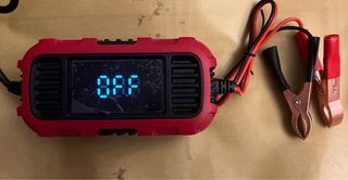 Cargador de baterías Ferve para coche. Este dispositivo es compacto y fácil de usar. Cargador de mantenimiento electronico electrónico. Modelo F2504 Válido para baterias de agm Válido para motos Se puede probar - Color rojo. - Pinzas de conexión incluidas.